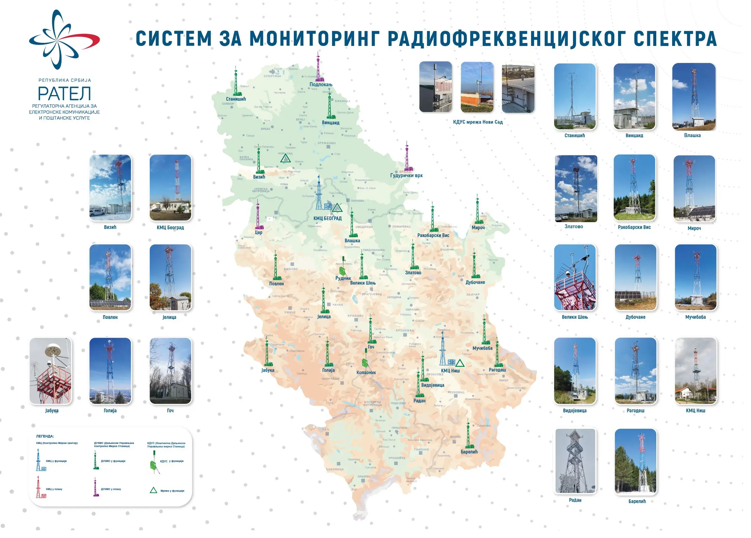 Регулаторно тело за електронске комуникације и поштанске услуге (РАТЕЛ) је, на основу Закона о електронским комуникацијама, надлежна за обављање контроле коришћења радиофреквенцијског (РФ) спектра на целој територији Републике Србије. За испуњавање овог задатка у оквиру РАТЕЛ-а је задужена Служба за контролу РФ спектра, односно Контролно-мерни центри као организационе јединице ове службе.